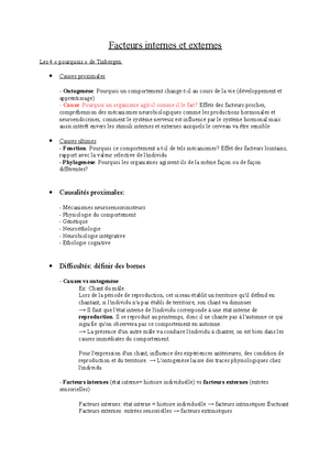 Facteurs internes et externes du comportement - Facteurs internes et externes Les 4 « pourquois » de - Studocu