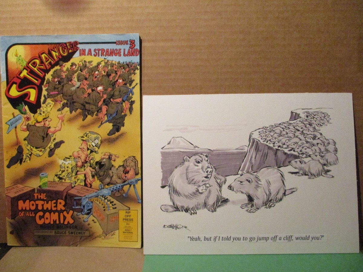 Original Cartoon Art Gag Panel Lemmings & Cliff Edge Strip Signed Bruce Bolinger | eBay