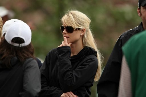 Elin Nordegren, wife of Tiger Woods, watches her husband on the ...