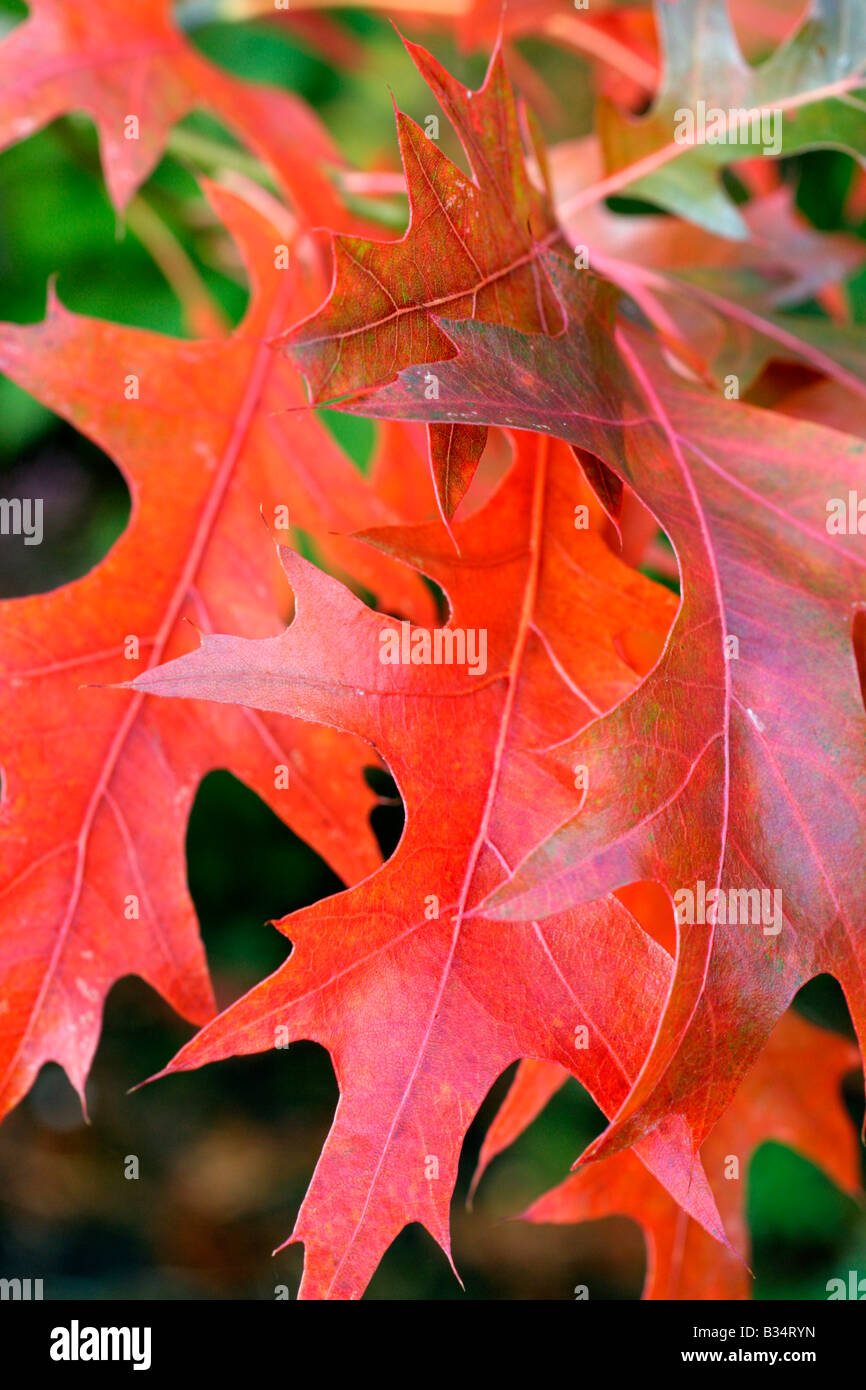 Gros plan du Pin Oak, Quercus palustris, feuilles à l'automne la couleur rouge. New York, USA Photo Stock - Alamy