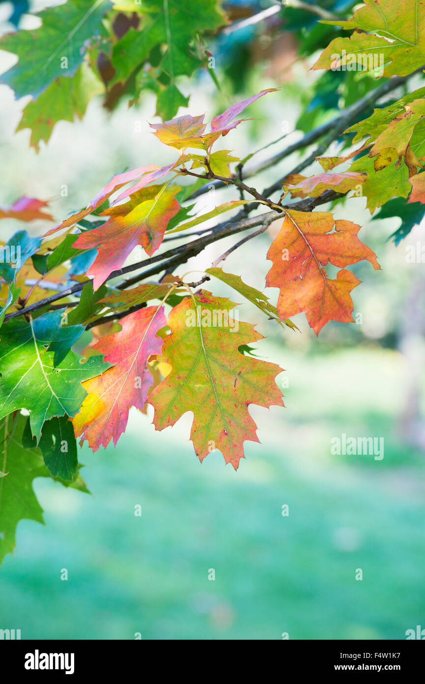 Quercus palustris. Feuilles de chêne PIN en automne. ROYAUME-UNI Photo Stock - Alamy