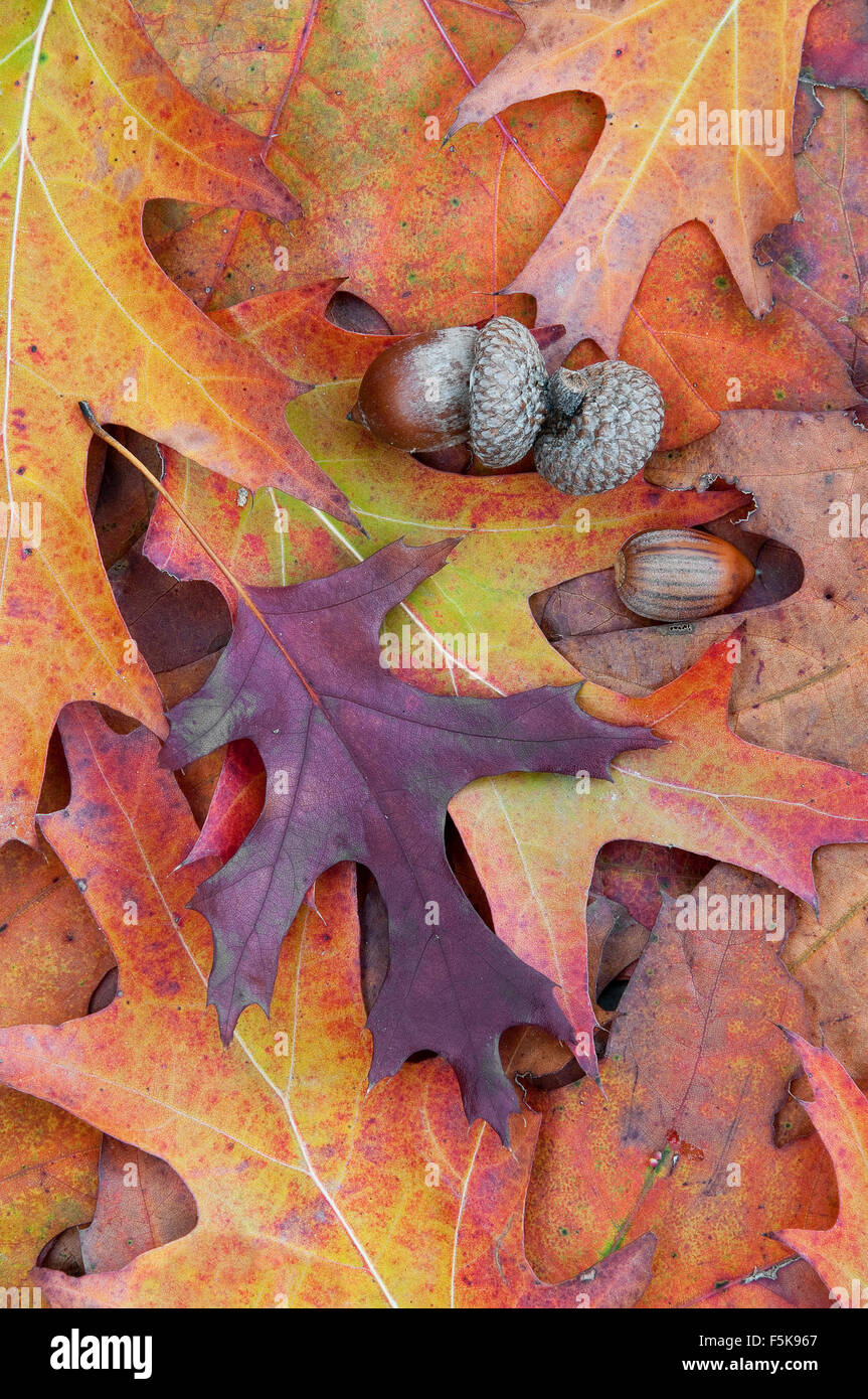 Les feuilles d'automne et de glands de chêne, pin,( Quercus palustris) est de l'Amérique du Nord Photo Stock - Alamy