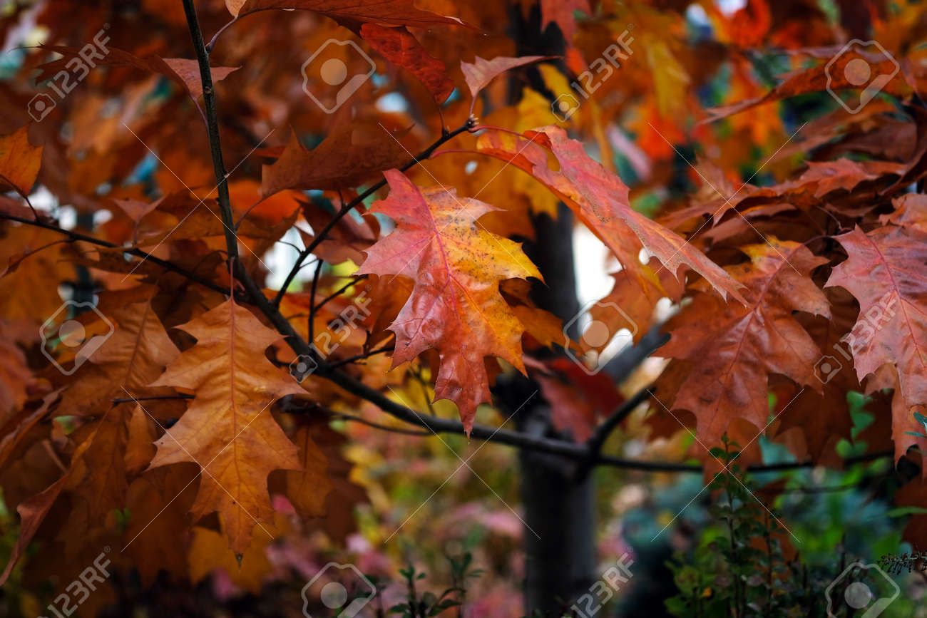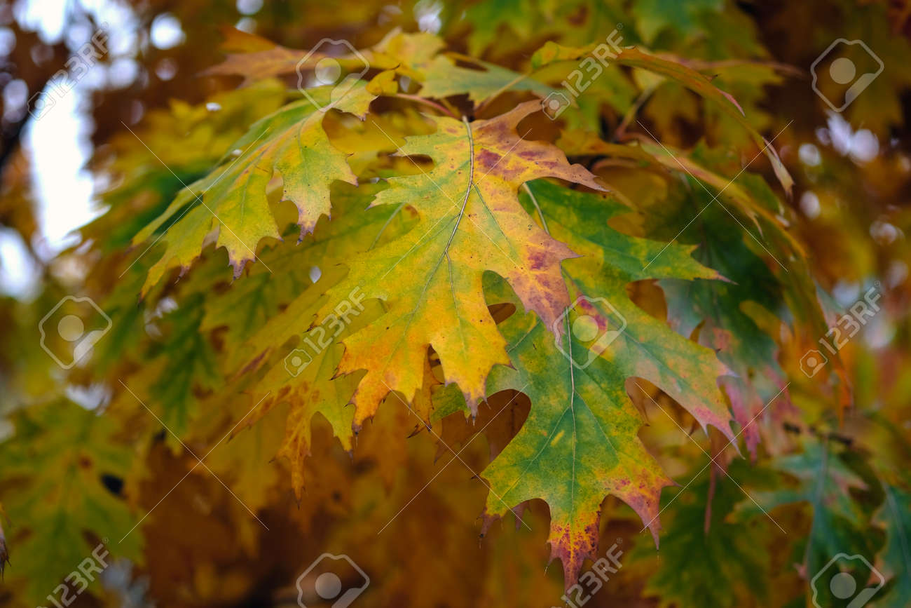 Autumn Leaves Of A Pin Oak Or Swamp Spanish Oak Ot Quercus Palustris Stock Photo, Picture and Royalty Free Image. Image 6005832.