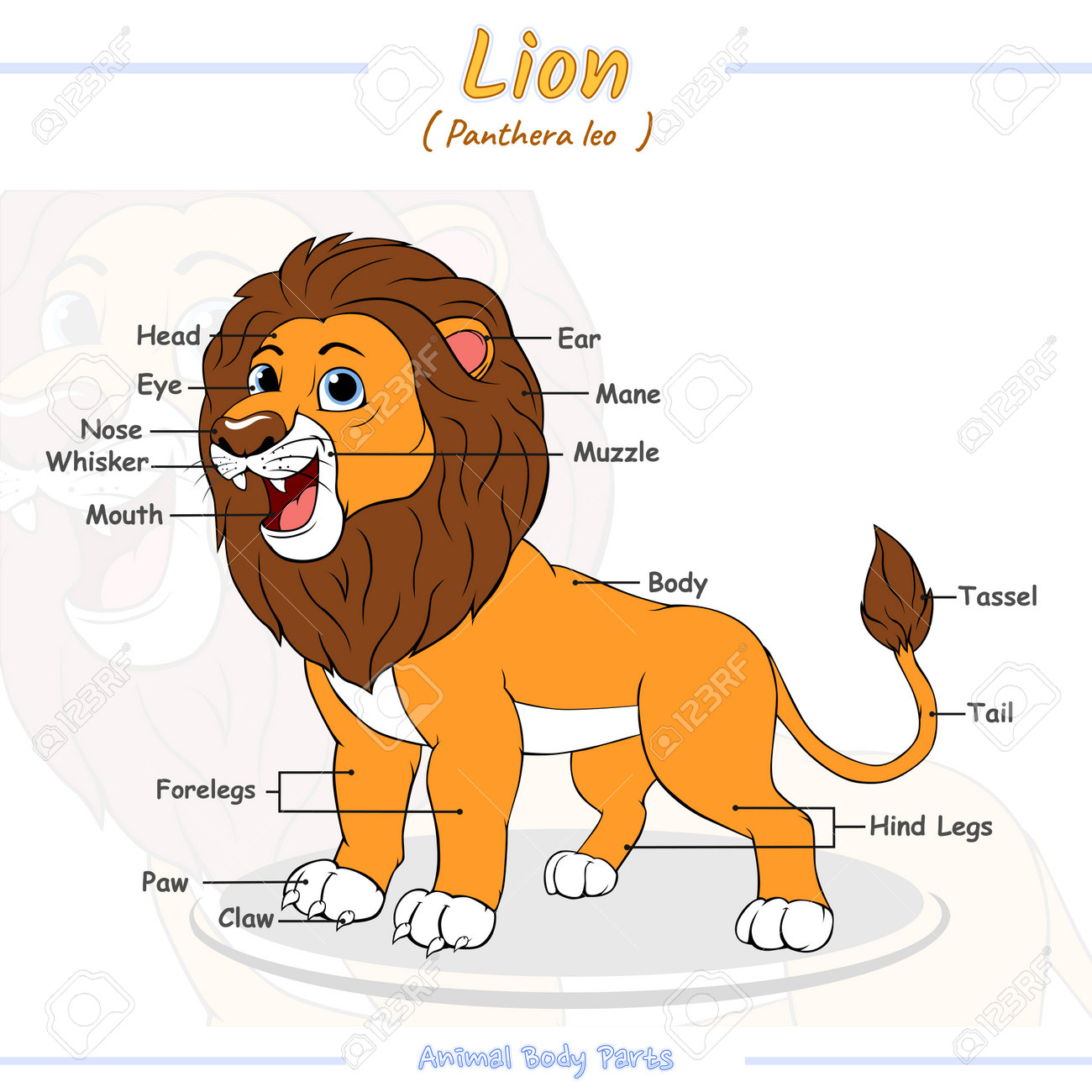 Lion. Feuille De Travail De Développement De L'éducation. Page D'activité. Jeu Pour Enfants. Personnage De Dessin Animé. Illustration Vectorielle De Couleur. Parties Du Corps D'un Lion. Clip Art Libres De Droits, Svg,