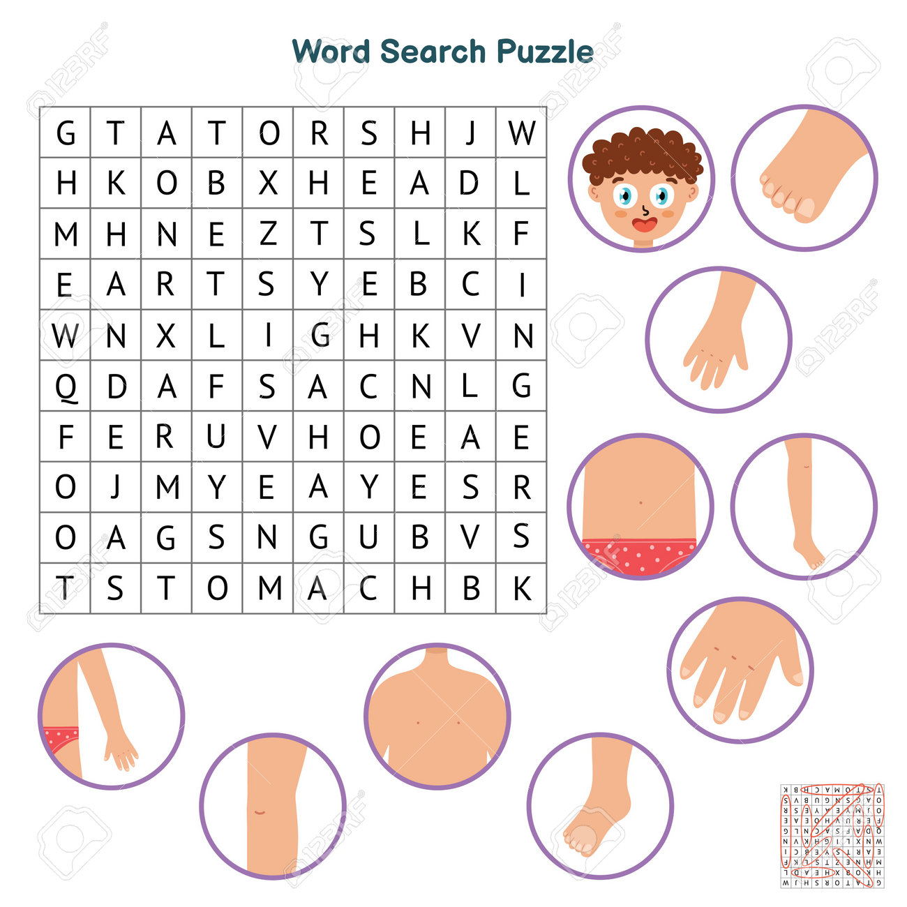 Puzzle De Recherche De Mots Sur Les Parties Du Corps. Jeu Éducatif Pour Les Enfants. Feuille De Travail Sur L'apprentissage Du Corps Humain Clip Art Libres De Droits, Svg, Vecteurs Et Illustration.