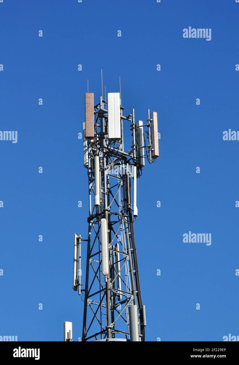 Tour de communication et fond ciel bleu clair, Hertfordshire, Angleterre, Royaume-Uni Photo Stock - Alamy