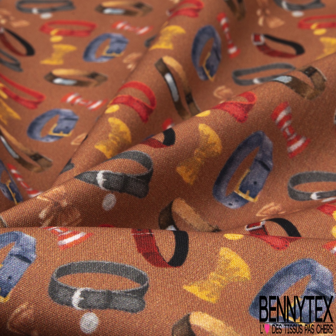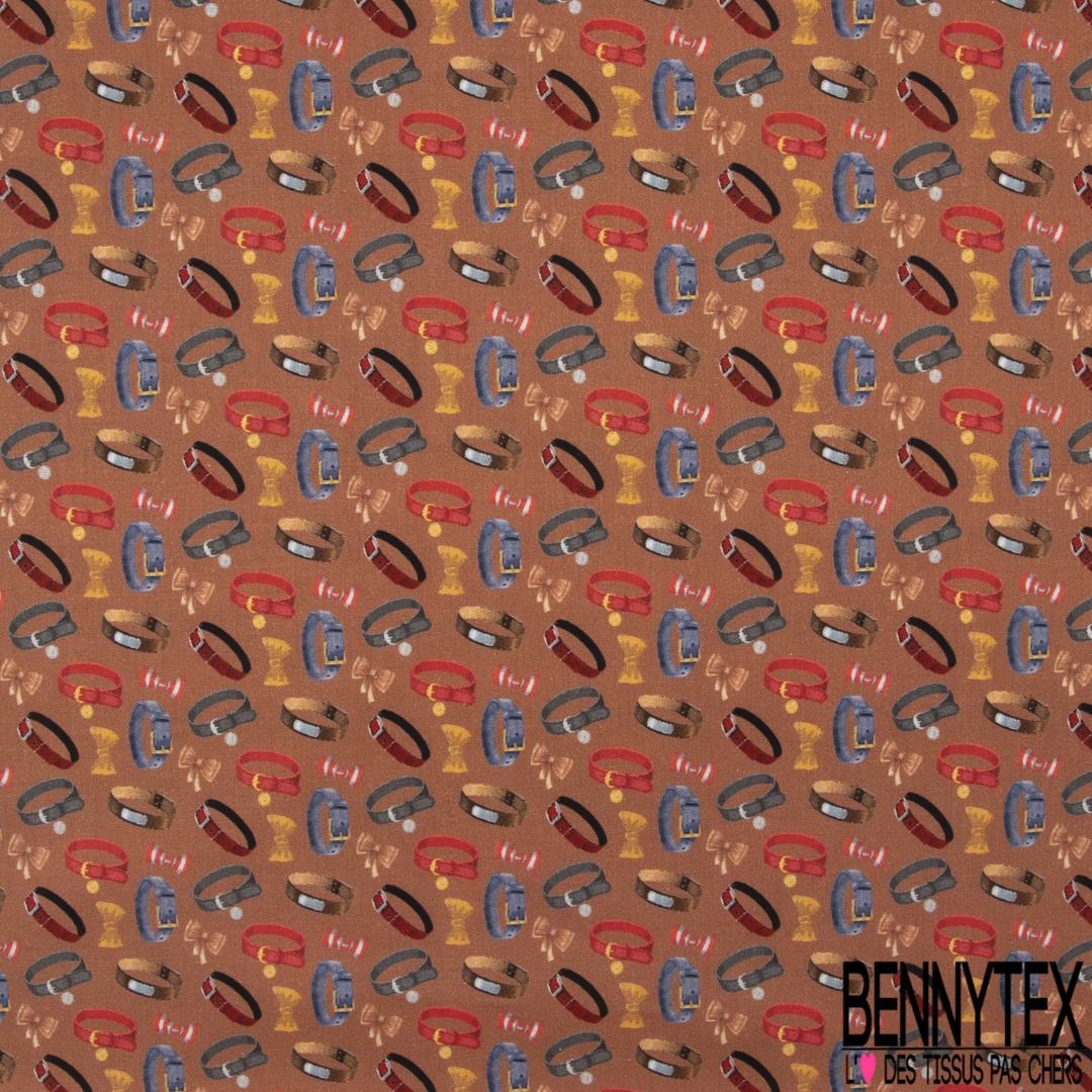 Coton imprimé digital motif collier et noeud papillon pour chat et chien multicolore Fond terracotta