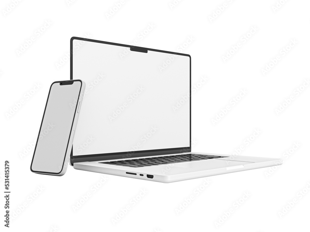 MacBook Pro Laptop and iPhone 13 smartphone in 3D rendered ...