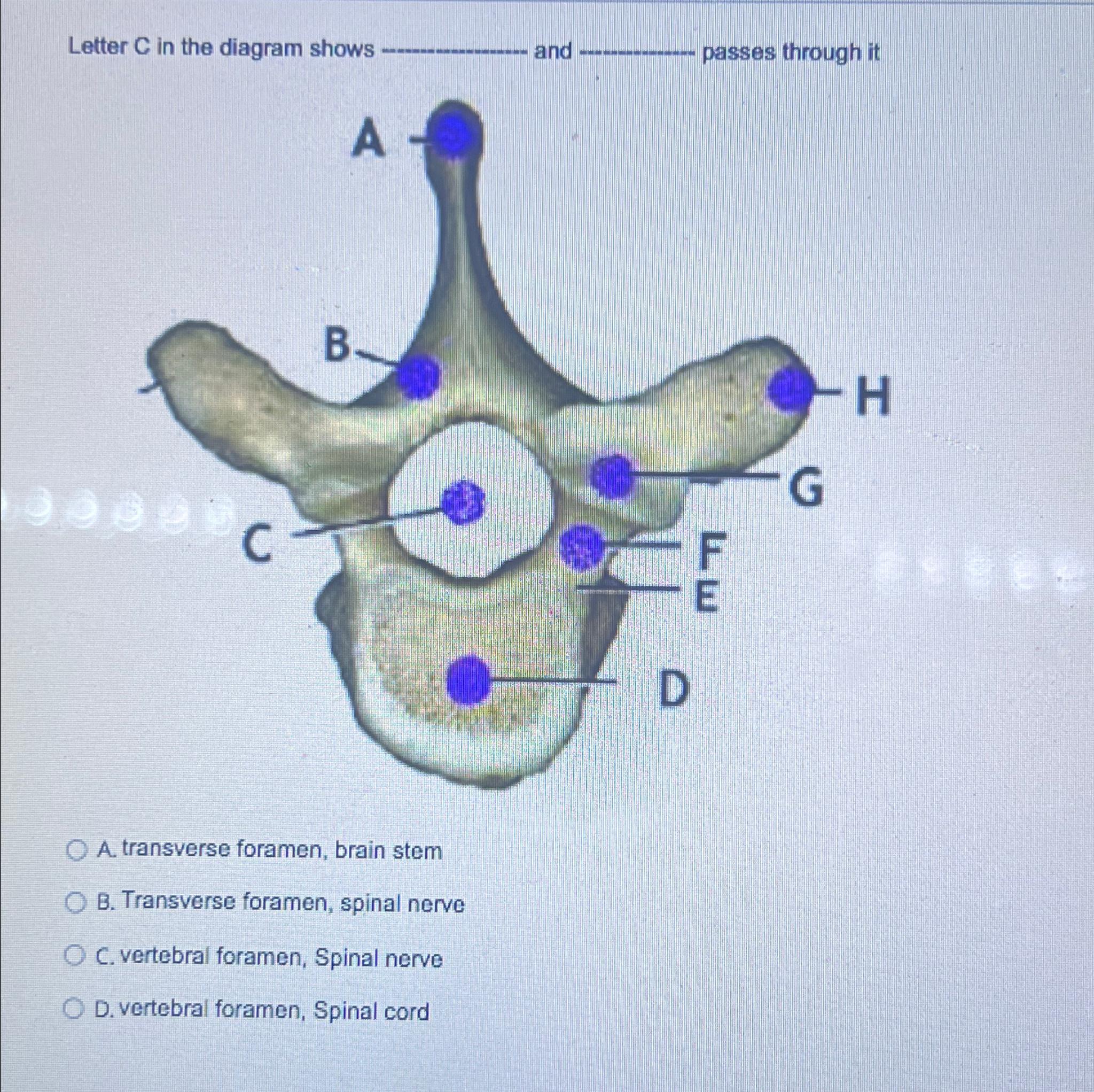 Solved Transverse foramen Transverse process Vertebral | Chegg.com