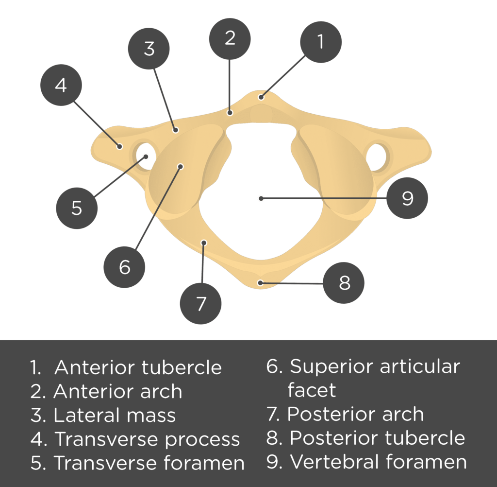 First Cervical Vertebra. Atlas C1. Anterior,The atlas vertebra is one of the bones in your neck ,vertebral morphology,cervical vertebrae, transverse foramen, vertebral foramen, medical illustration 28282169 Vector Art at Vecteezy
