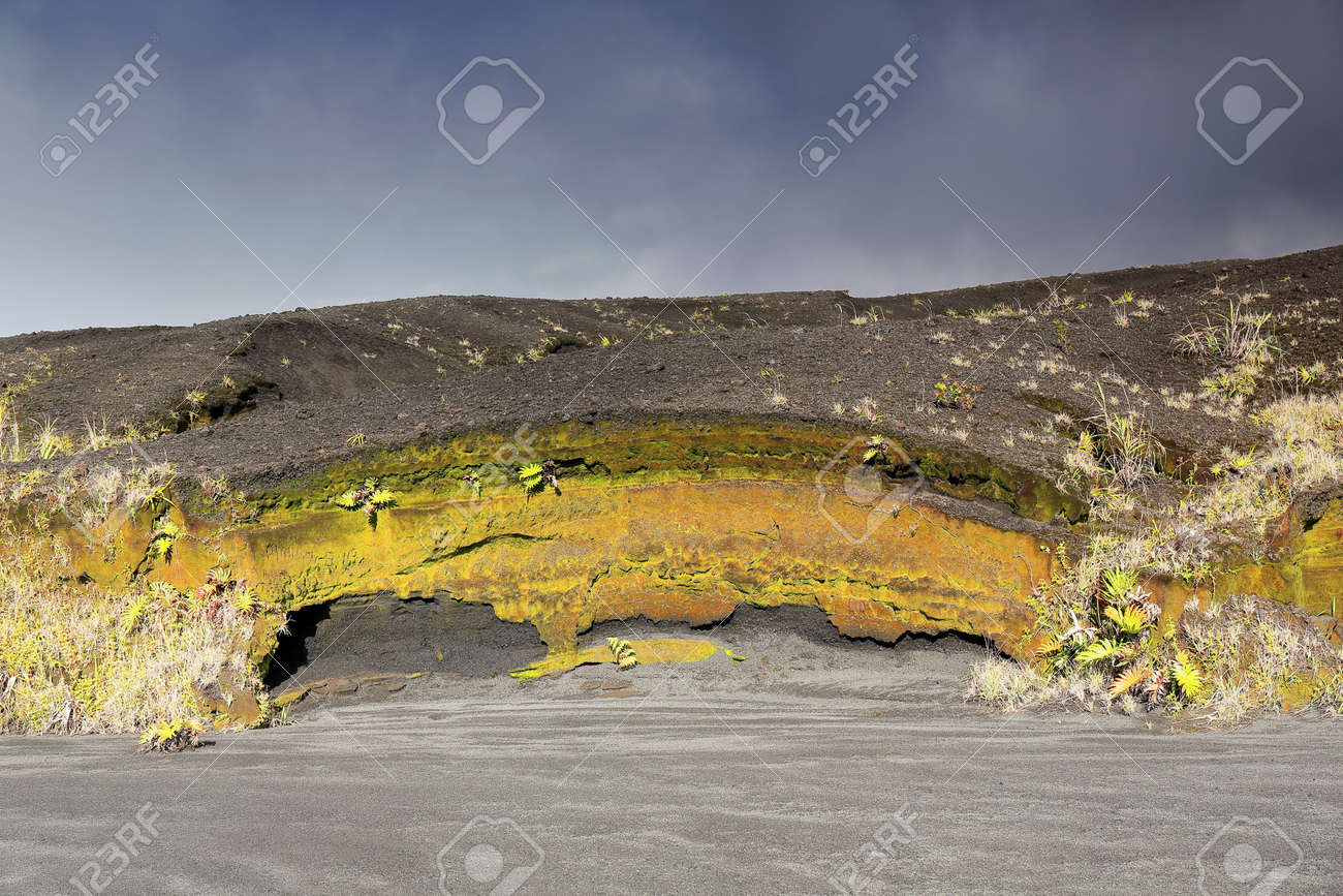Caminhando Pela Caldeira Vulcânica De 8x12km.wide Pisando Em Terrenos De Cinzas Pretas Soltas E Setores De Lava Sólida Cobertos Com Líquenes E Pequenas Plantas Verdes-caminho Para A Cratera Marum. Ambrym Island-Malampa Prov.-Vanuatu.