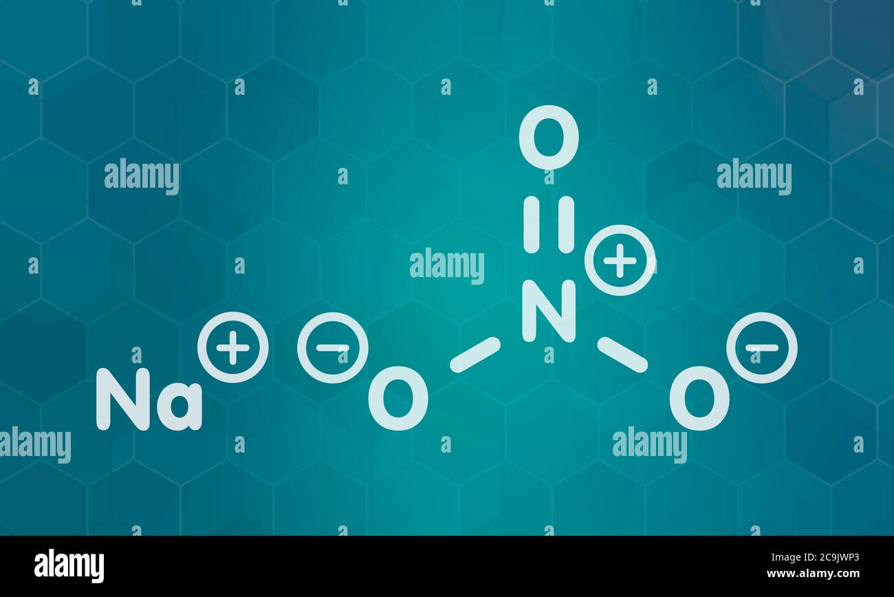 Nitrate de sodium, structure chimique. Formule blanche du squelette sur fond de gradient sarcelle foncé avec motif hexagonal Photo Stock - Alamy
