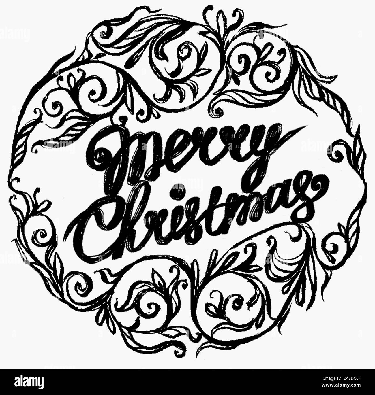 Frohe Weihnachten Schriftzug Vorlage. Grußkarte Einladung mit Dekorationen Elemente. Frohe Weihnachten hand Schrift auf weißem Hintergrund. Abbildung Stockfotografie - Alamy