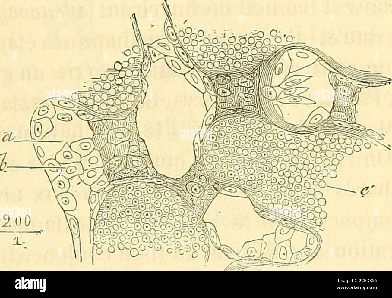 Manuel d'histologie experimentale. FiG. 10. — Coupe de la substance médullaire dun ganglion lymphatique du bœuf; a, subslaiice folli-culaire ; b, travées flbrcusos ; c, oies do la lymphe; d, vaisseaux