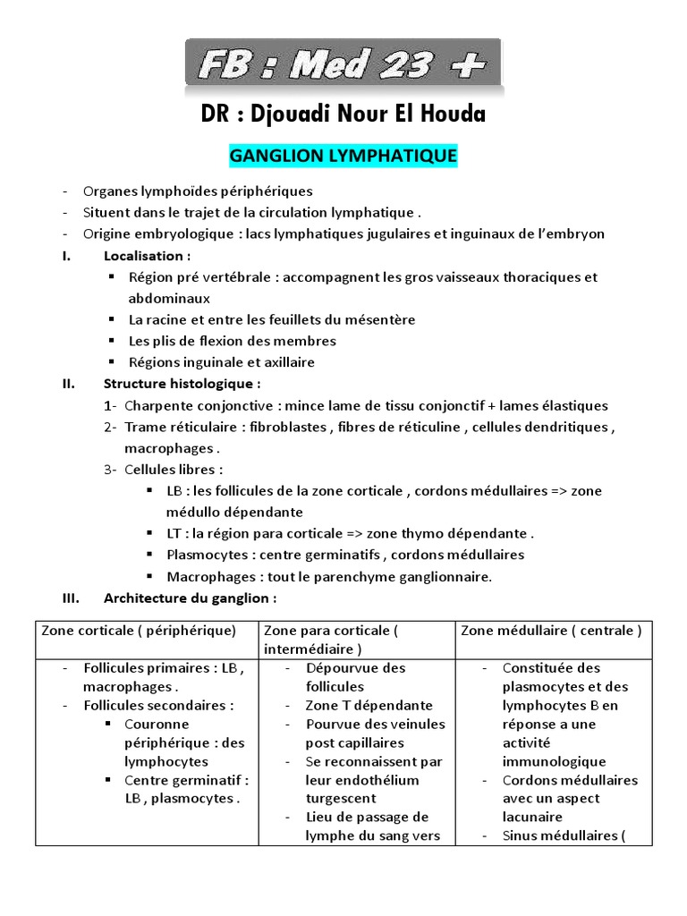 Ganglion Lymphatique | PDF | Système lymphatique | Lymphocyte