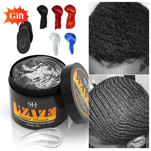 Pommade anti-chute de cheveux pour homme noir, gel coiffant, nourrissant, prévient les cheveux bouclés, maintien du bain, 360 vagues, style superposé, contrôle des bords