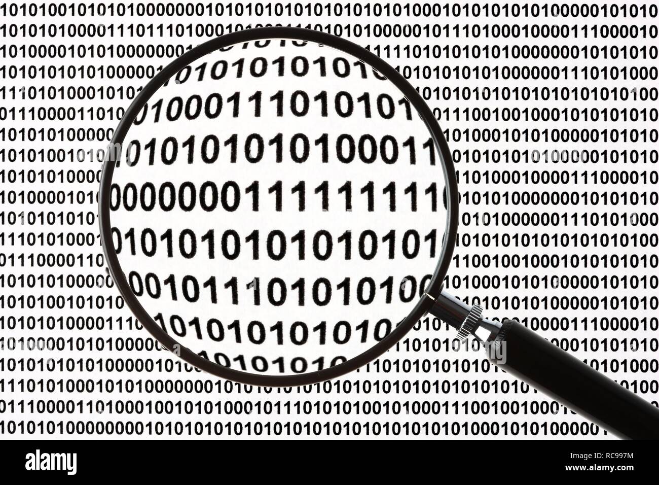 Les nombres binaires, code informatique à travers une loupe Photo Stock - Alamy