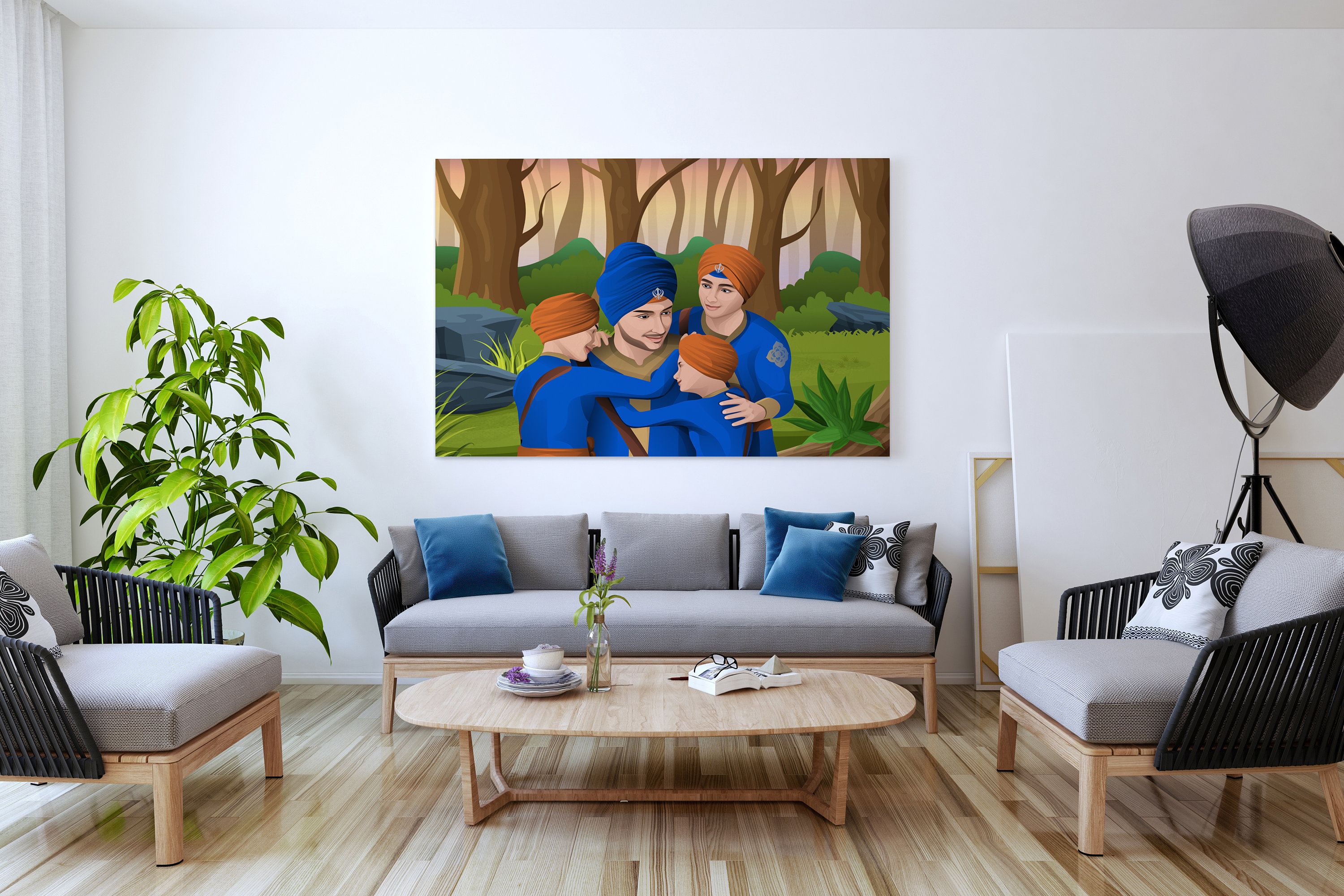 Guru Gobind Singh Ji With Chaar Sahibzaade Modern Print Photo ...