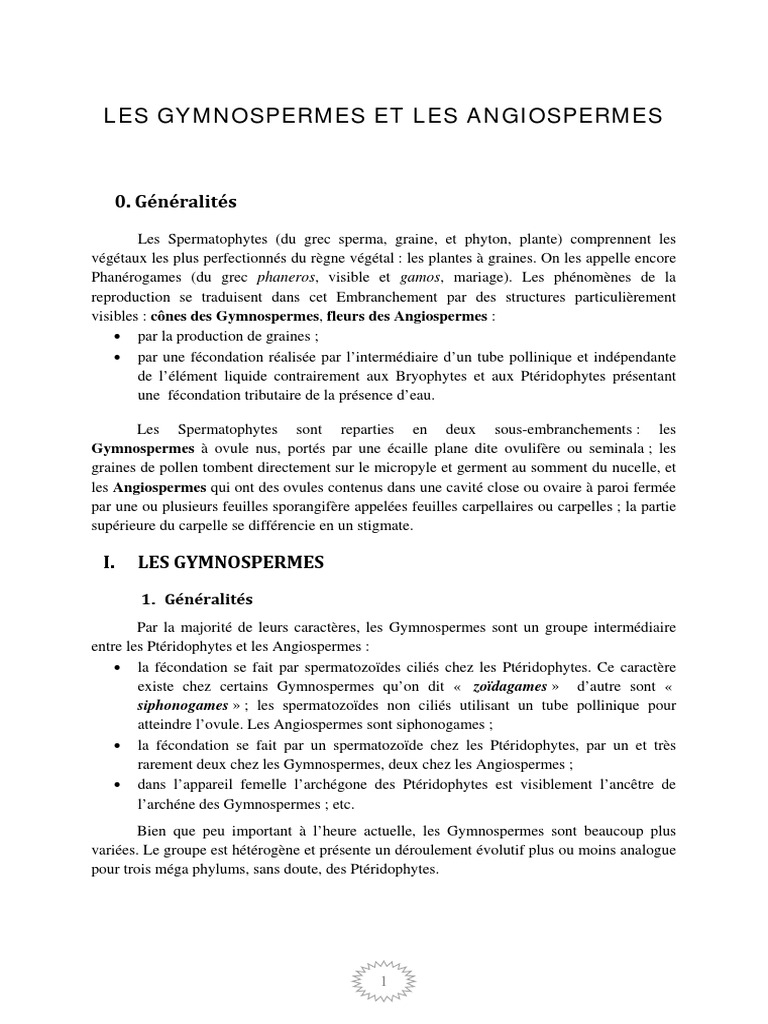 Notes Cours Gymnospermes Et Angiospermes LIBio | PDF