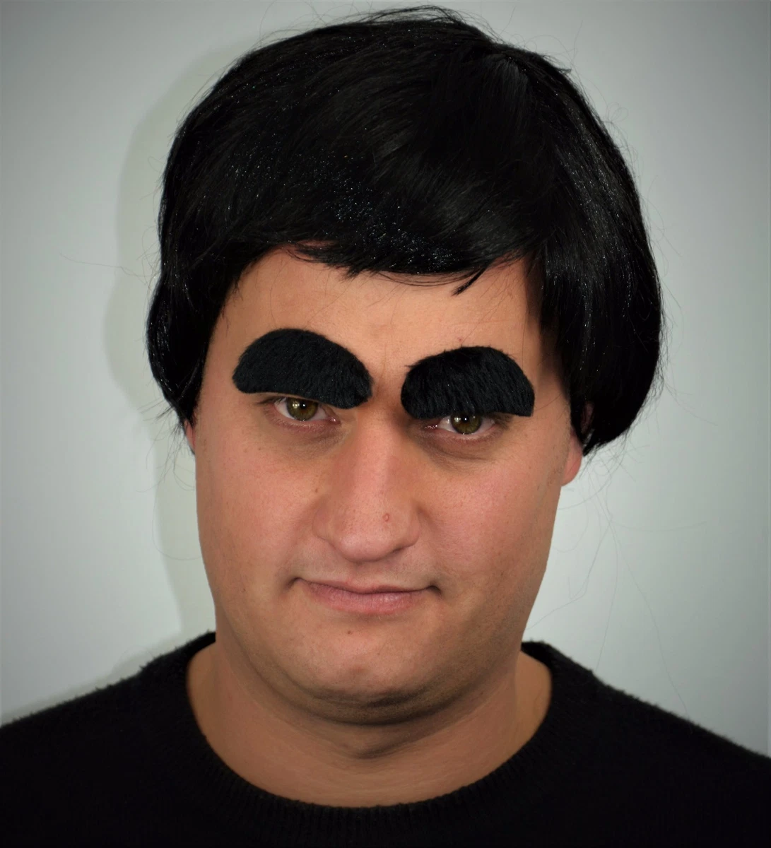 Men's Black Wig and Thick Eyebrows, 70's/80's Pop Fancy Dress Party, Cowboy, Cop