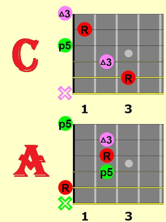 Accords majeurs Formes ou formes CAGED pour guitare à 6 cordes - Etsy Canada