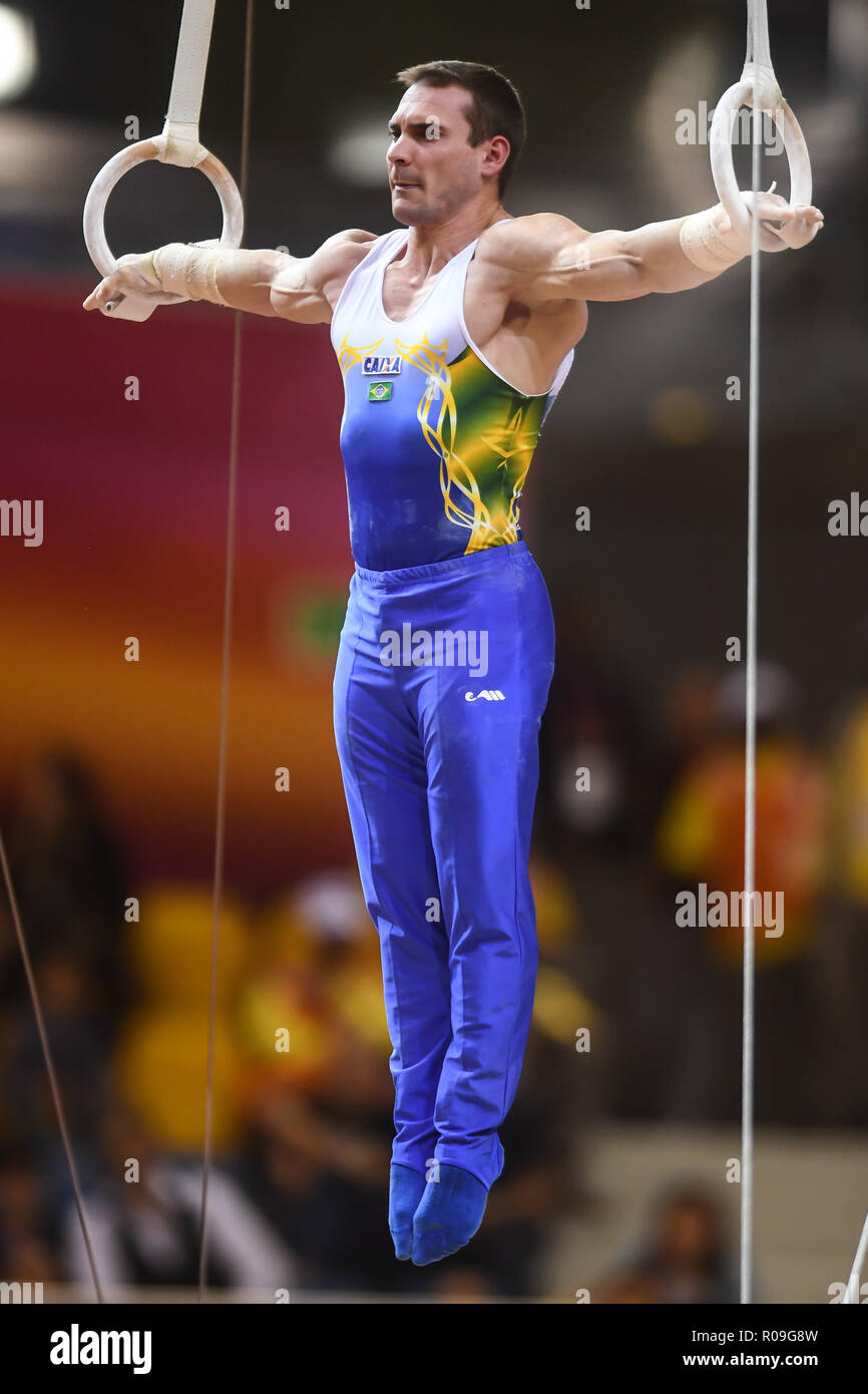 Doha, Qatar. 2nd Jan, 2016. ARTHUR ZANETTI from Brazil performs an iron cross during the Still Rings Event Finals competition held at the Aspire Dome in Doha, Qatar. Credit: Amy Sanderson/ZUMA Wire/Alamy