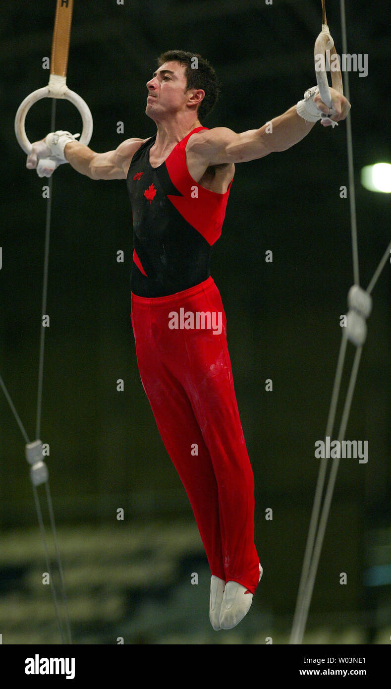Gymnaste Canadien Grant Golding est titulaire d'une croix de fer dans l'équipe masculine et tout autour de la concurrence de la Pan American Gymnastics Championships à Rio de Janeiro, Brésil le 8