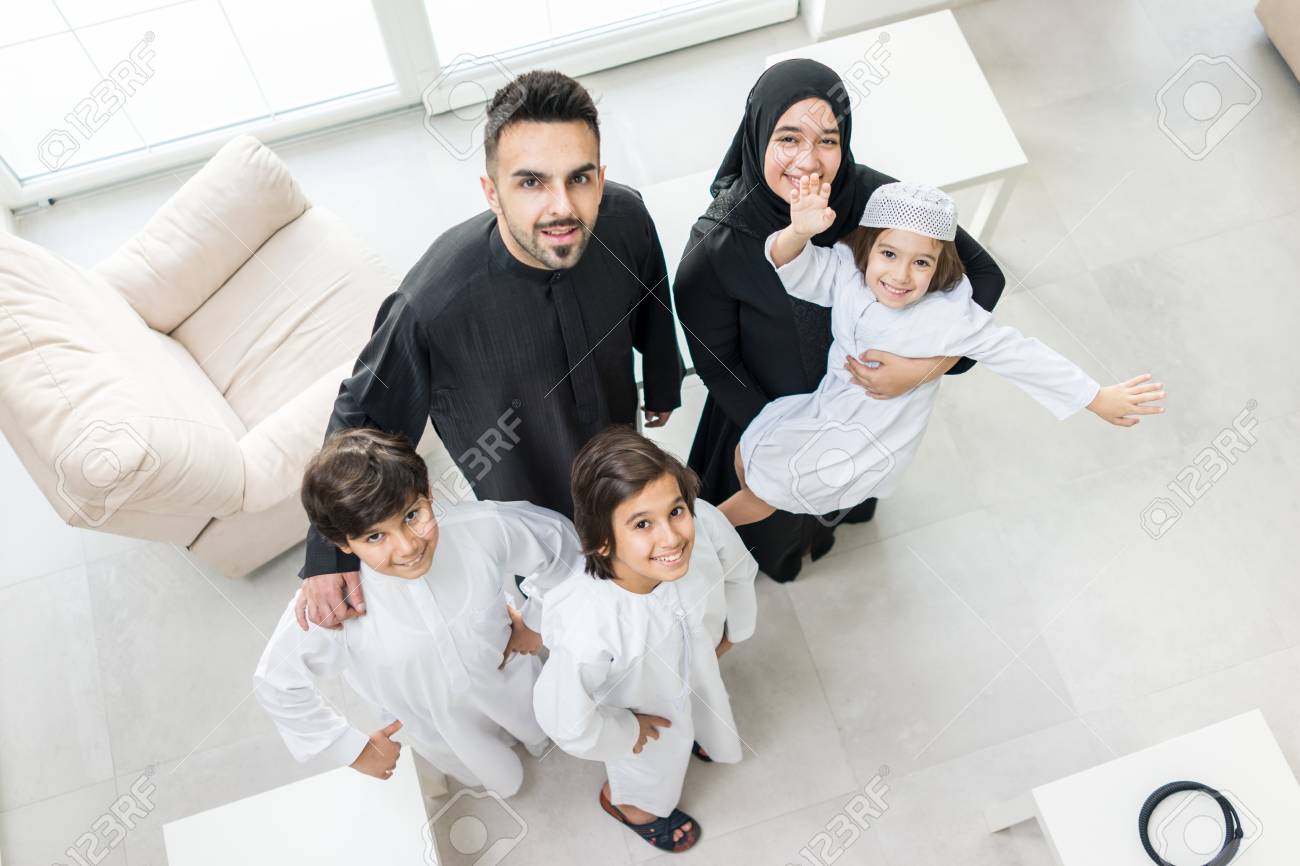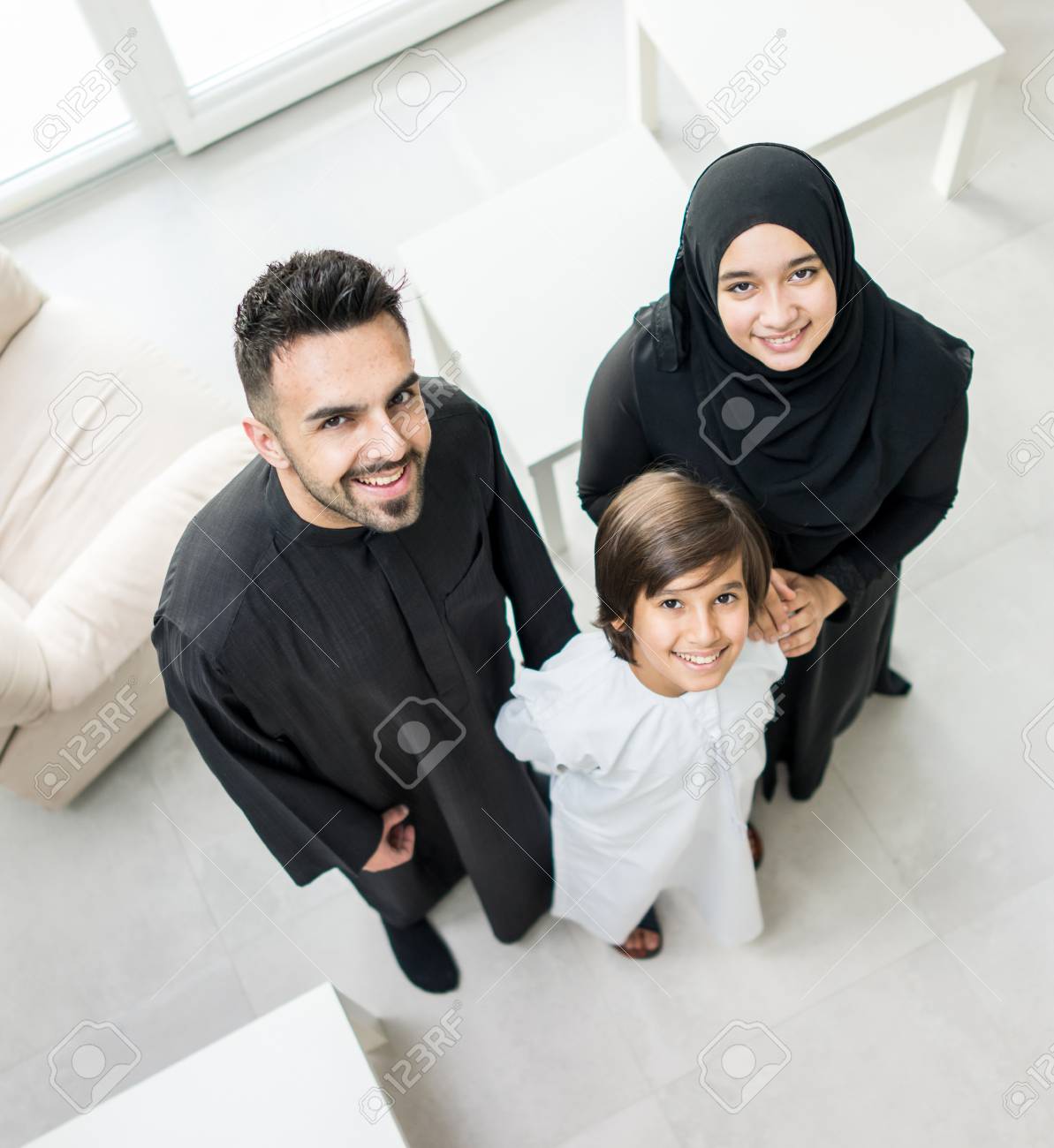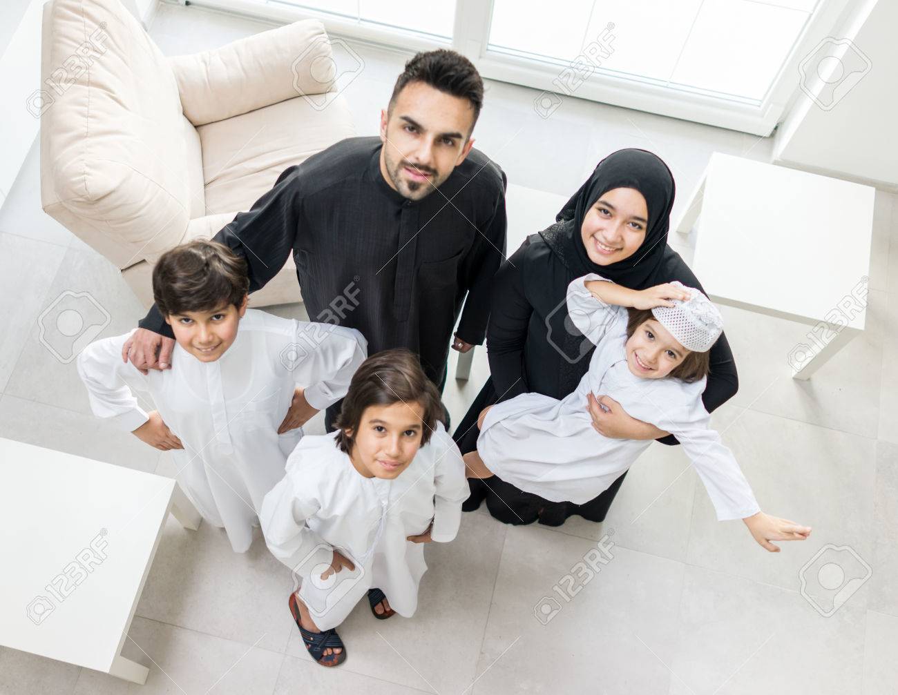 Heureuse Famille Musulmane À La Maison Banque D'Images et Photos Libres De Droits. Image 112783677
