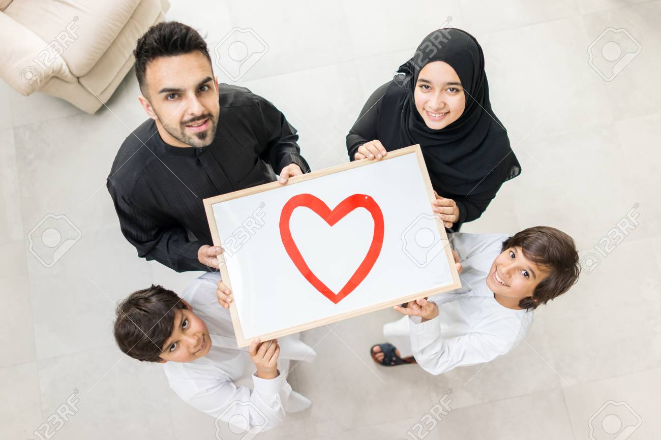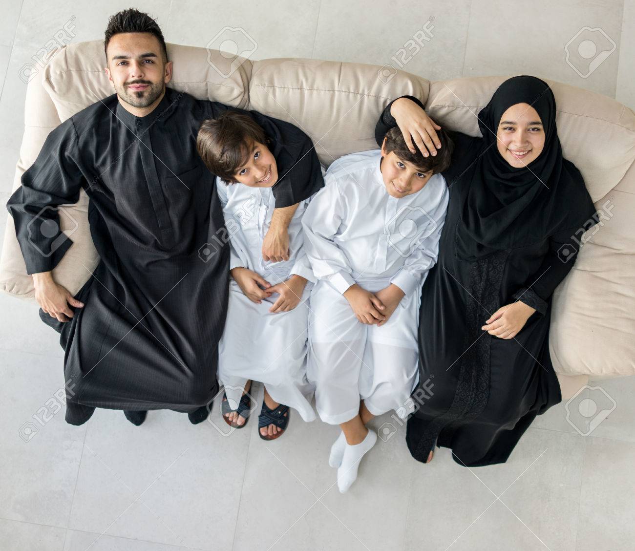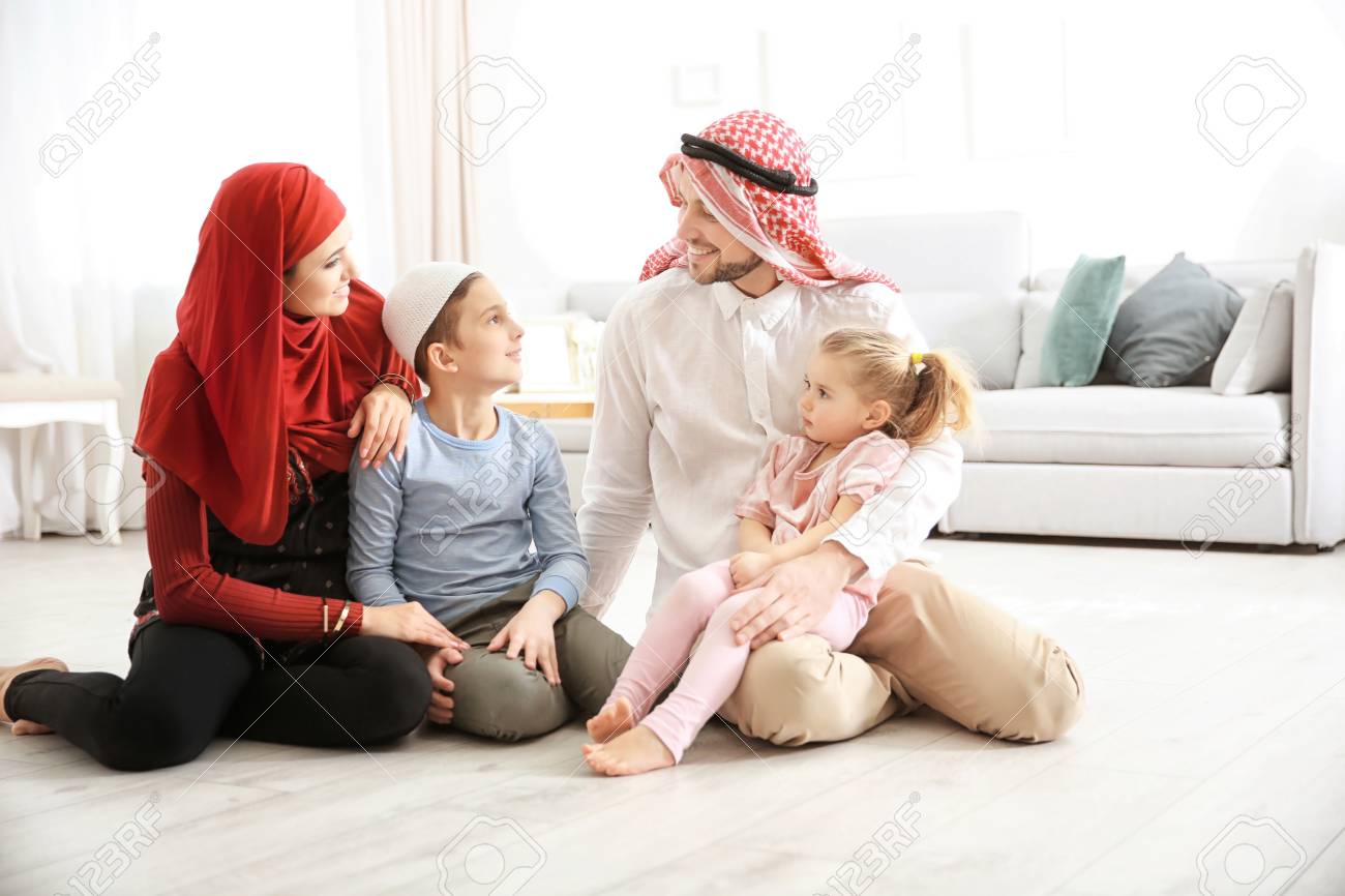 Heureuse Famille Musulmane À La Maison Banque D'Images et Photos Libres De Droits. Image 112783677