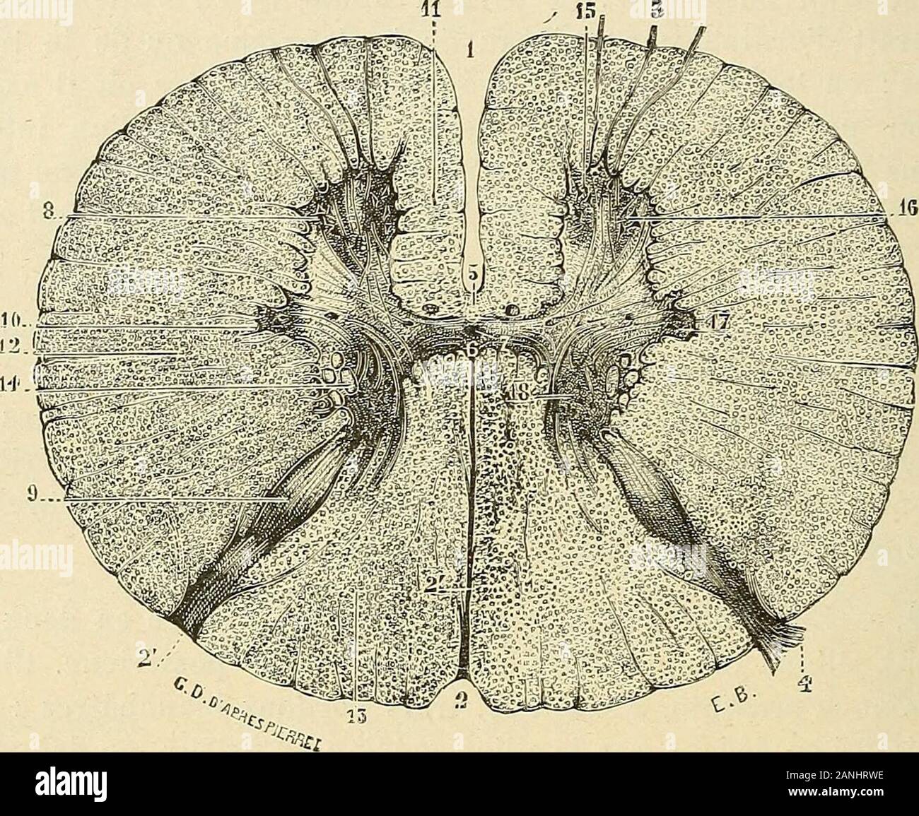 Éléments d'histologie. L'histologie. ^7 éléments d'Histologie. La dure-mère, ainsi que l'arachnoïde, envoie des prolongements sur les racines nerveuses à ; et le sous-dural et sous-espaces sont arachnoidal a continué dans les