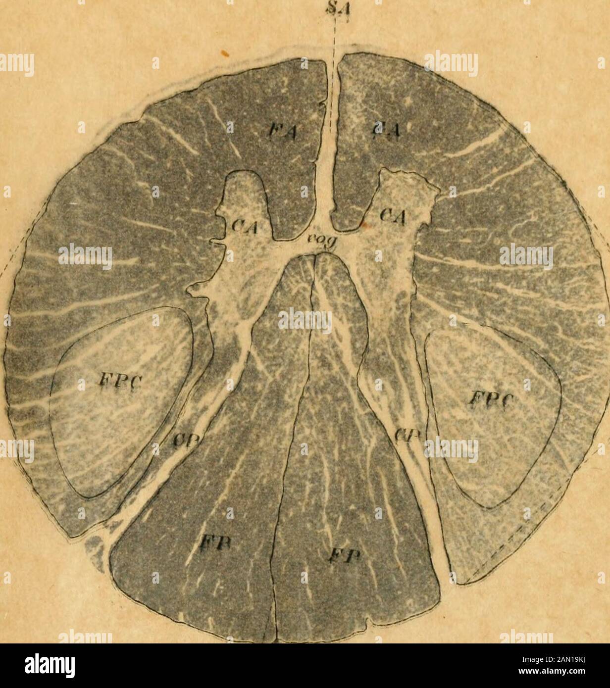 Éléments d'histologie. L'histologie. Chap. XVI.] la moelle épinière. 129 diffère dans les différentes régions, et cette différence est principalement due à la longueur et l'épaisseur de la commissure grise. Dans une