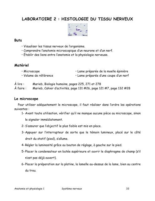 LABORATOIRE 2 : HISTOLOGIE DU TISSU NERVEUX