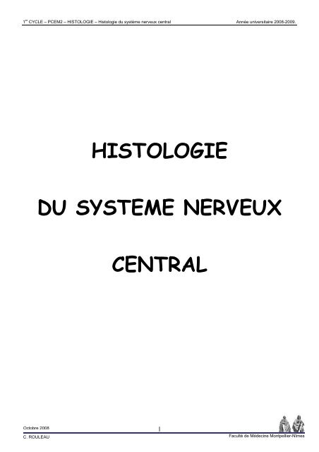 HISTOLOGIE DU SYSTEME NERVEUX CENTRAL - Faculté de ...