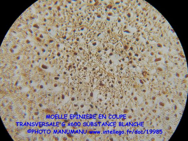 Éléments d'histologie. L'histologie. La moelle épinière. 17.3 Le contraste de couleur entre le blanc manteau et l'âme grise est très visible. La relation entre la matière grise et blanche diffère dans