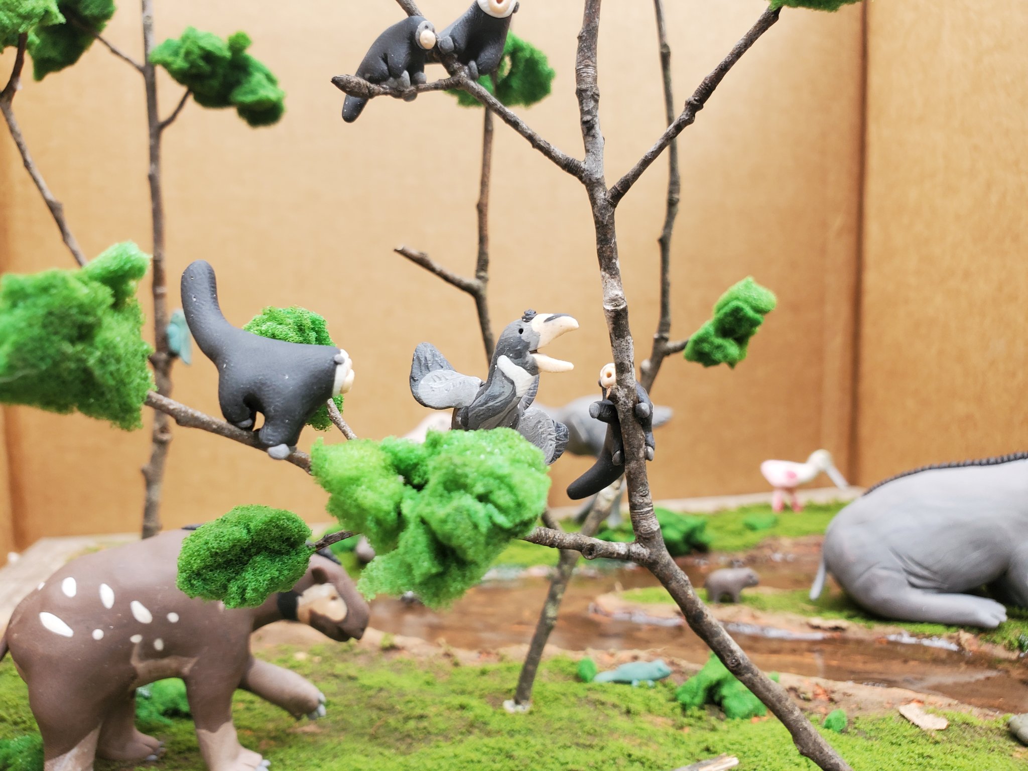 George Lafaye on X: "Psilopterus getting pestered away from its roosting spot by a troop of Homunculus, and Homalodotherium strolling through the forest's edge. https://t.co/o33oozlYYt" / X