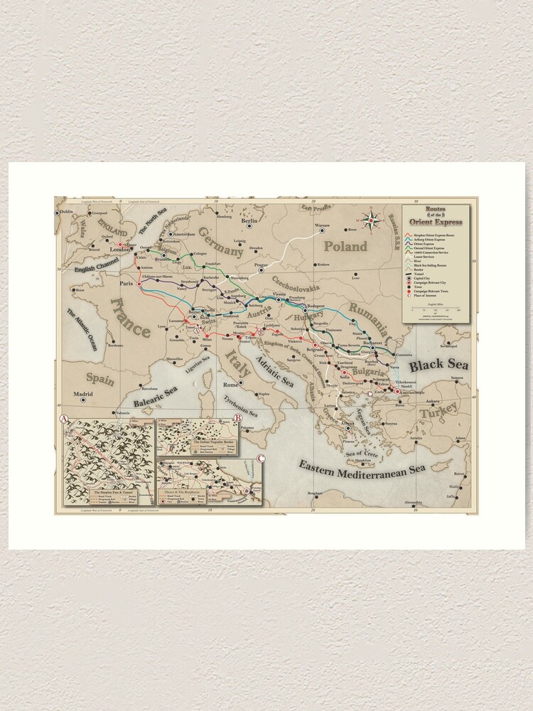 Impression artistique for Sale avec l'œuvre « Horreur sur l'Orient Express - Carte du parcours » de l'artiste Chaosium | Redbubble
