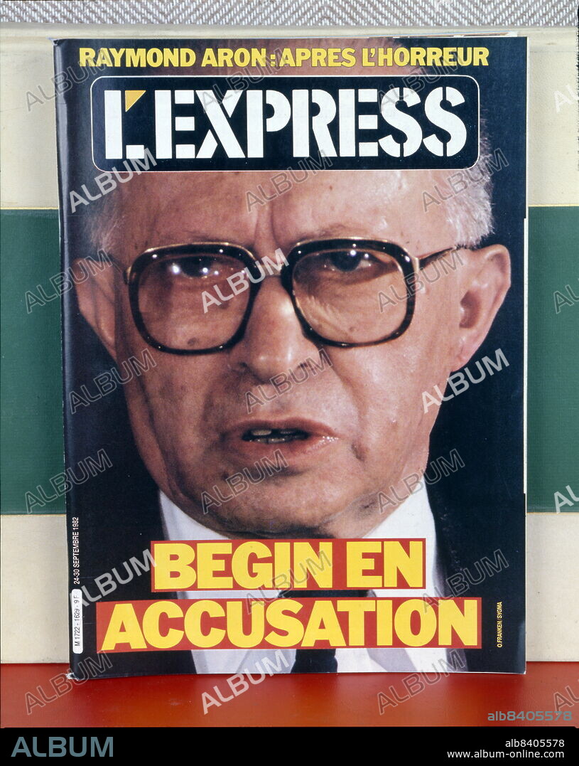 Coloured photograph of Raymond Aron. From "L'Express" with headline "Begin accuses", dated 24-30 September 1982. - Album alb8405578