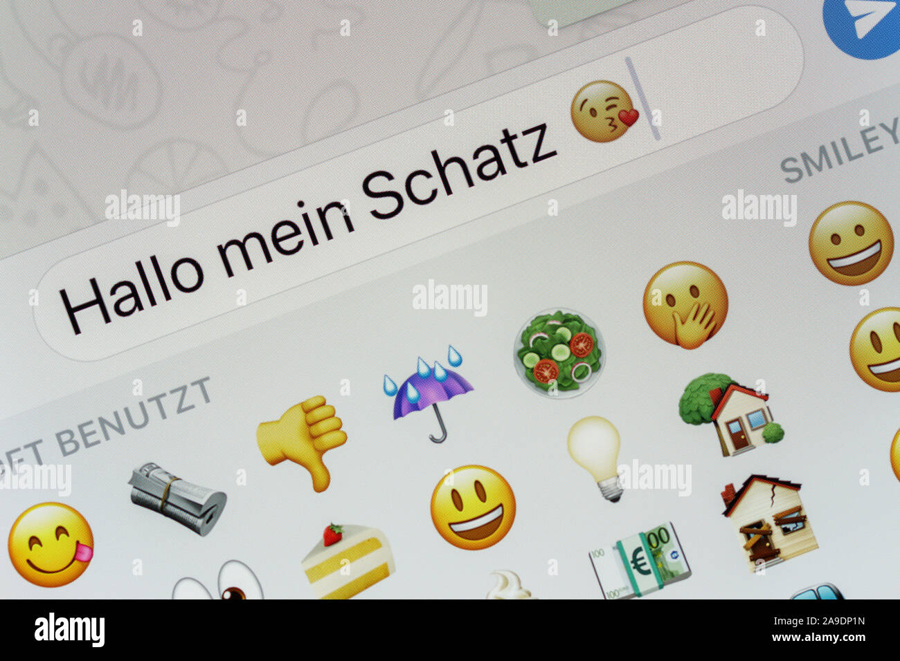 Apple iPhone, detail, WhatsApp, text ifield, message 'hello', smiley, emoji Stock Photo - Alamy