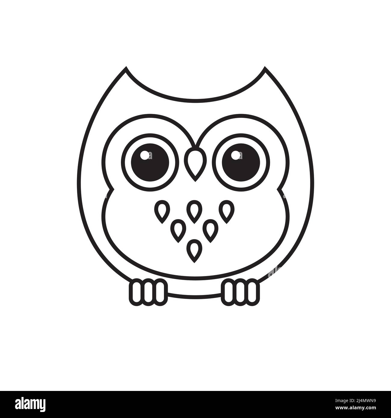 Vector flat cartoon kawaii outline owl isolated on white background Stock Vector Image & Art - Alamy