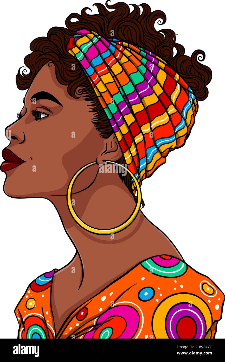 Magnifique portrait de femme africaine dans des couleurs vives tribal à motifs vêtements illustration vectorielle Image Vectorielle Stock - Alamy