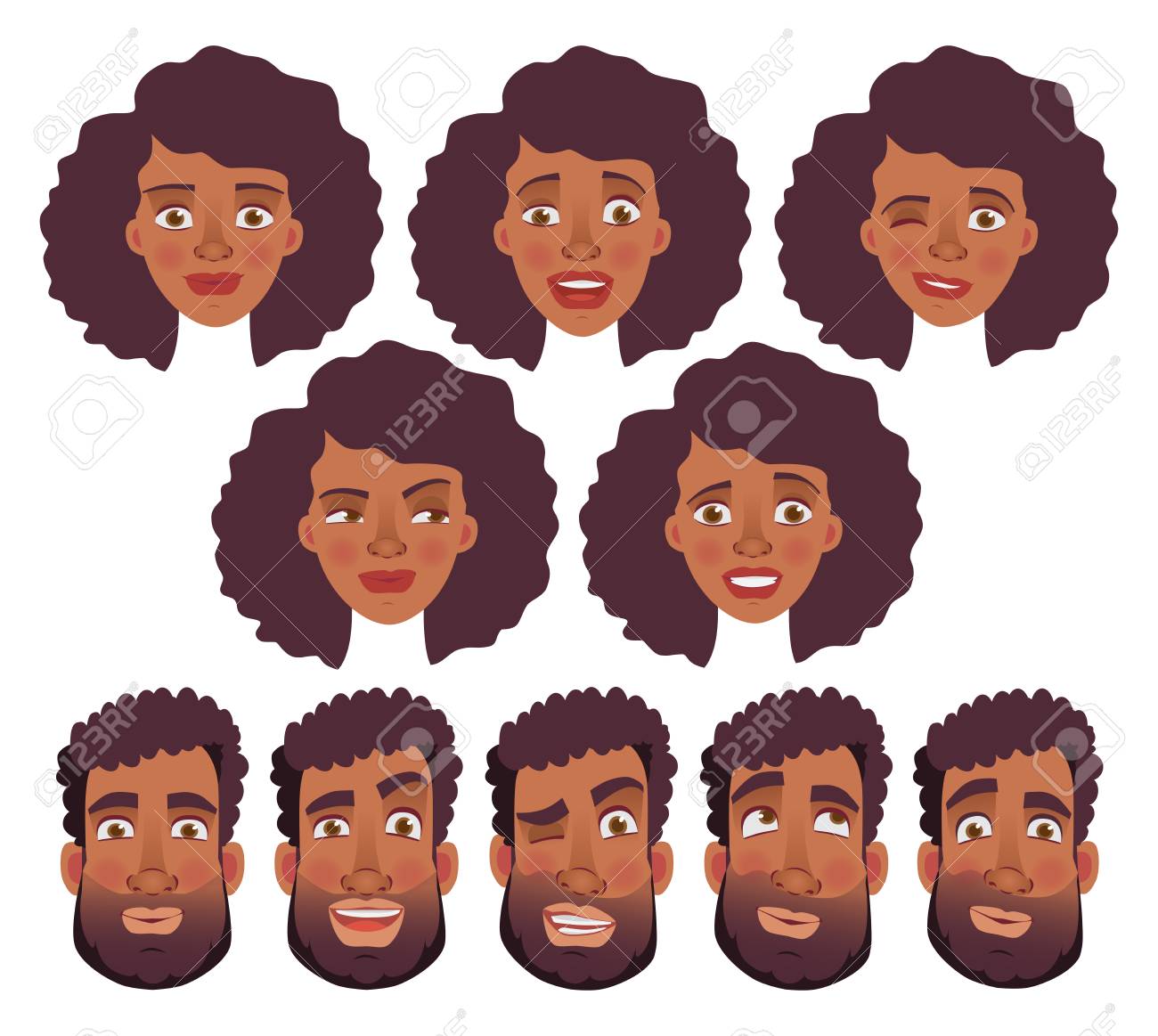 Visage D'homme Africain Et De Femme Africaine. Ensemble D'illustrations Vectorielles Clip Art Libres De Droits, Svg, Vecteurs Et Illustration. Image 126761520