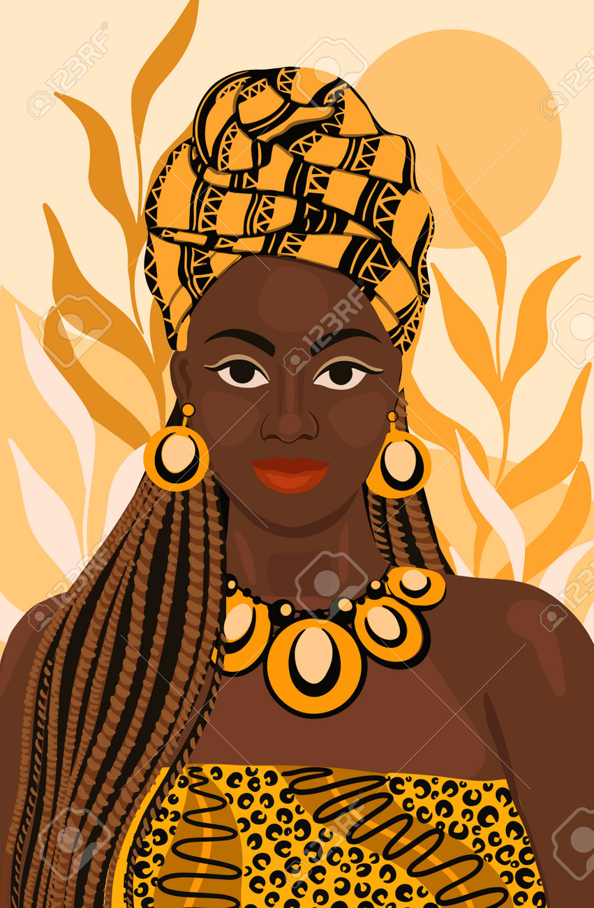 Portrait D'une Princesse Africaine Isolée Sur Fond Blanc Graphiques Vectoriels Illustration Stock - Illustration du afrique, exotique: 159486909