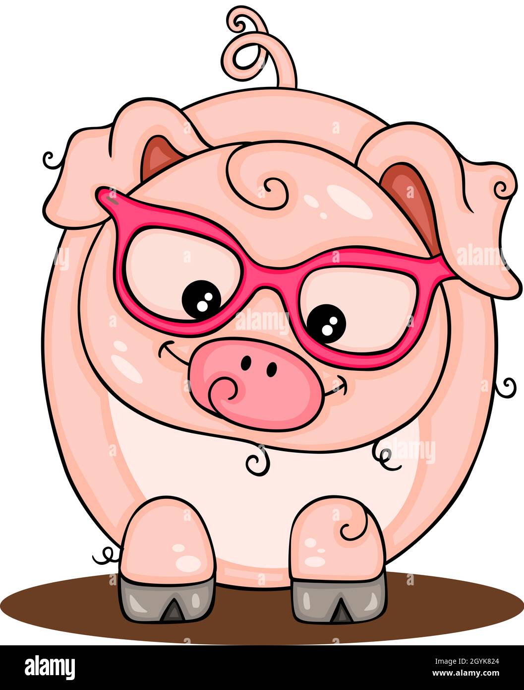 Cochon drôle avec des verres isolés sur blanc Photo Stock - Alamy
