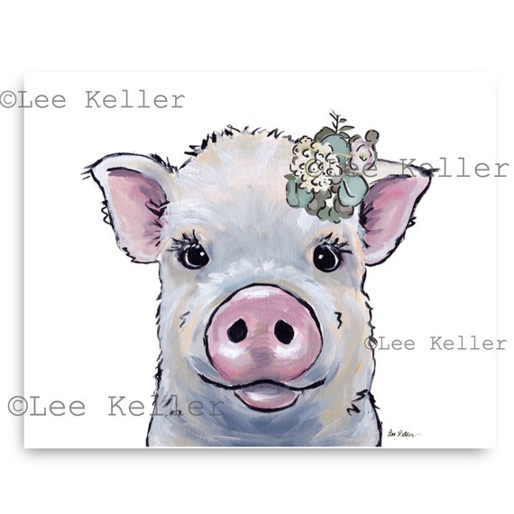 Impression d'art de cochon, cochon avec fleurs Art. Impressions de cochons, art mignon de cochon, pépinière de cochons, art de cuisine de cochon de ferme, cochon drôle - Etsy France