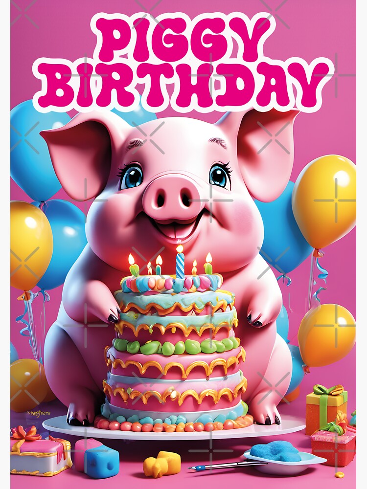 Sticker avec l'œuvre « cochon drôle, gâteau, anniversaire » de l'artiste Mauswohn | Redbubble