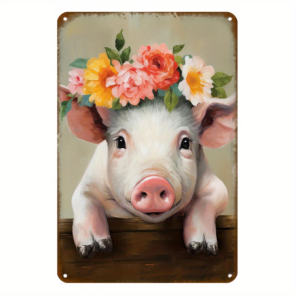 1 Pièce, Signe En Métal Rétro, Cochon Drôle, Cochon Avec Maquillage, Cochon Parodie, Cochon Avec Rouge À Lèvres, Adapté Pour Intérieur Extérieur Chambre Maison Cuisine Cour Clôture De Jardin, Chambre Bar Salon