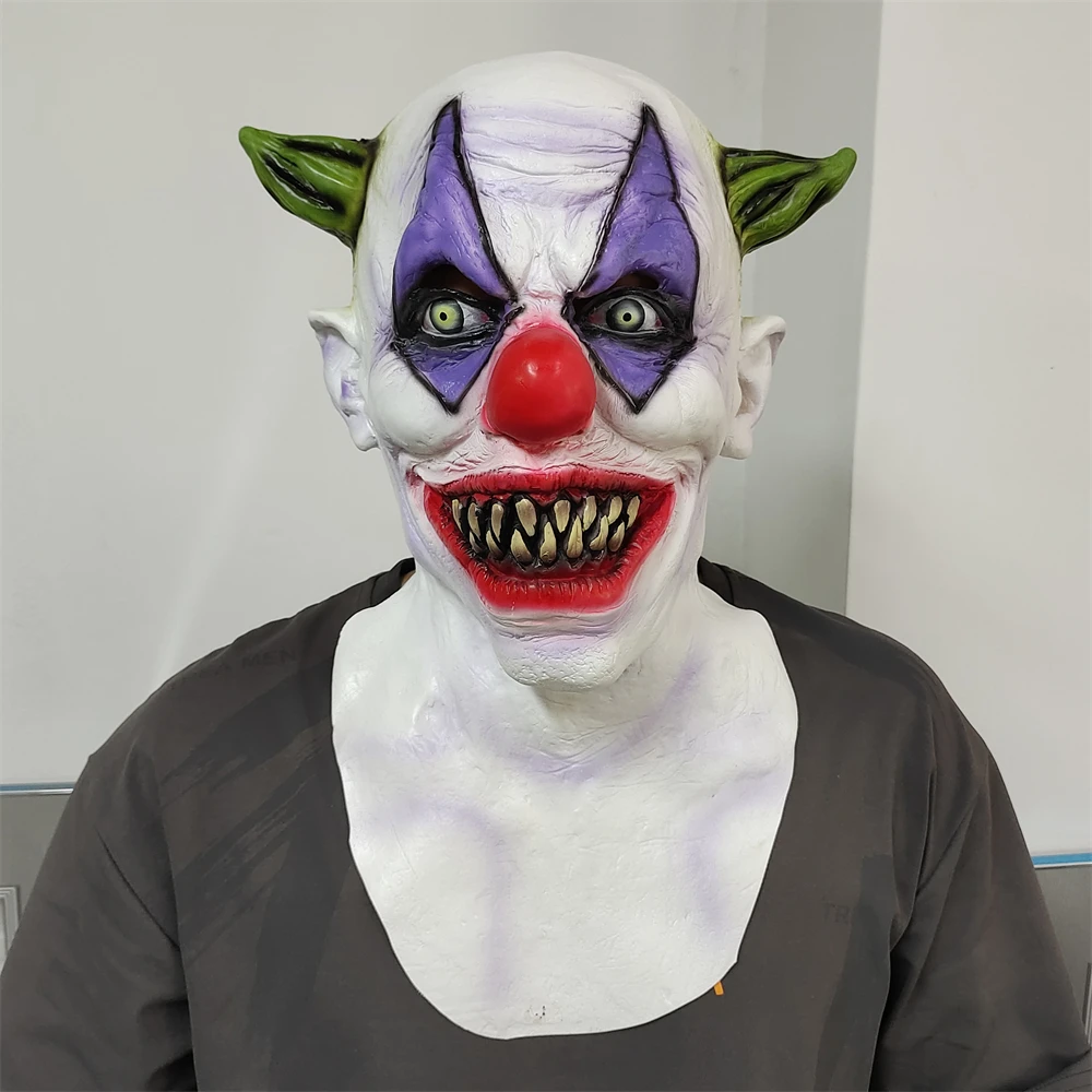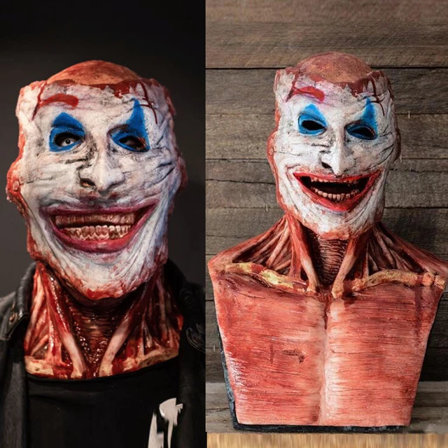Masque de Joker de Crâne Sanglant Effrayant d'Halloween, Cosplay, Clown d'Horreur, Modules à Double Couche, Casque en Latex de Démon, Accessoires de Costume de ix