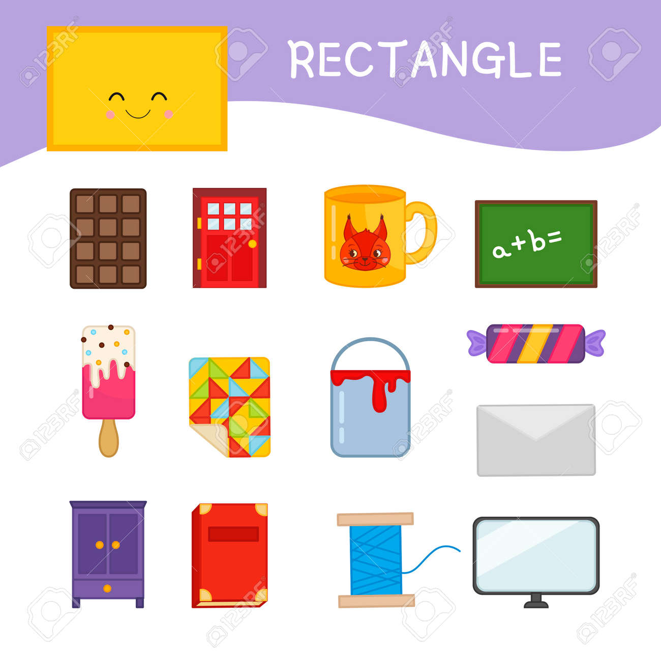 Ensemble Coloré D'objets De Forme De Rectangle Dictionnaire Visuel ...