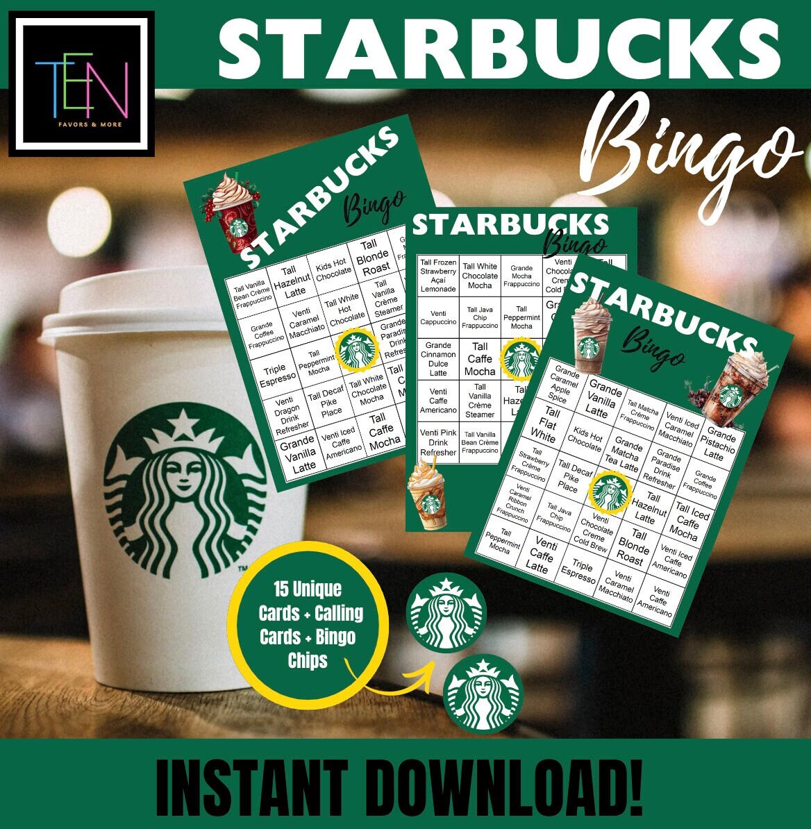 Starbucks Bingo Set 3 Personalized Starbucks Coffee INSTANT ...