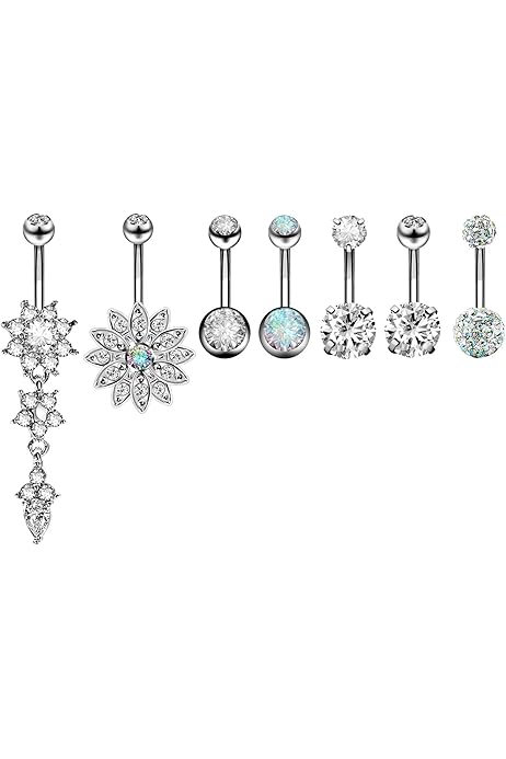 8pcs piercing au nombril bleu avec pendentif long pour ...